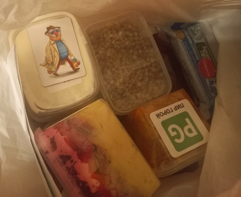 В январе воспользовались еще раз предложением "Пир горой". Понравились все блюда, особенно биточки по-гречески (на фото), фасоль по-гречески. Такой удачный домашний вкус Только не одобраю приправы в супе-лапше домашней с курой (они как сухой суп в пакетике) и в драники картофельные добавлен чеснок, может по классическому рецепту так и есть, я бы предпочитала без чеснока. Очень хорошие блюда - филе курицы в кляре и борщ зеленый со сметаной. Также салат свекла с сыром (на фото), это полезная и вкусная еда, хранится дольше майонезного салата. Макароны по-флотски жирноватые, но это отличное блюдо. Спасибо вашей службе доставки за помощь.